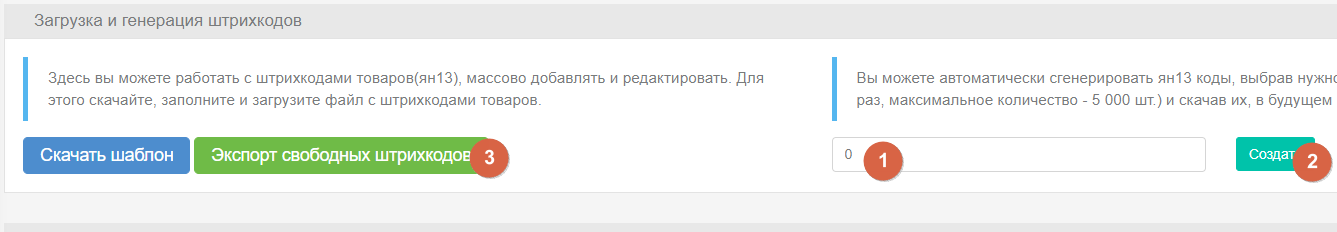 Вы можете автоматически сгенерировать ян13 коды, выбрав нужное вам количество (до 100 шт. за раз, максимальное количество - 5 000 шт.) и скачав их, в будущем присвоить своим товарам.